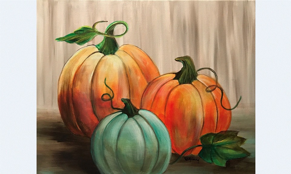 Description: Seasonal Painting Fun,“Country Pumpkins,” an original painting by Vicky, will be recreated in step-by-step instruction. Go home with a finished painting!