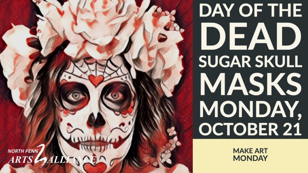 We’ll be decorating Day of the Dead Sugar Skull masks with traditional designs at the next Make Art Monday, October 21, 7 p.m. at the Trego Arts Center at St. Luke’s, 125 N. Main St., North Wales. $5