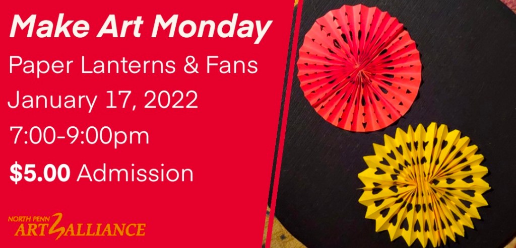Come out and join us on Monday, January 17th, for Make Art Monday from 7-9pm at the North Wales Arts & Cultural Center, located at 125 N. Main Street in North Wales. Parking is available in the back of the building off of Second Street