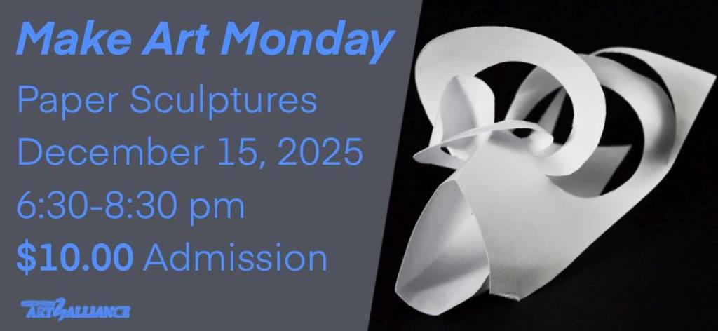Come out and join us on Monday, December 15th , for Make Art Monday from 6:30-8:30pm at Eclipse Center For Creative Community, located at 30 Vine Street in Lansdale. For this month’s project we will be making paper sculptures. Admission costs $10.00. All skill levels are welcome so feel free to bring friends. We look forward to seeing you all!